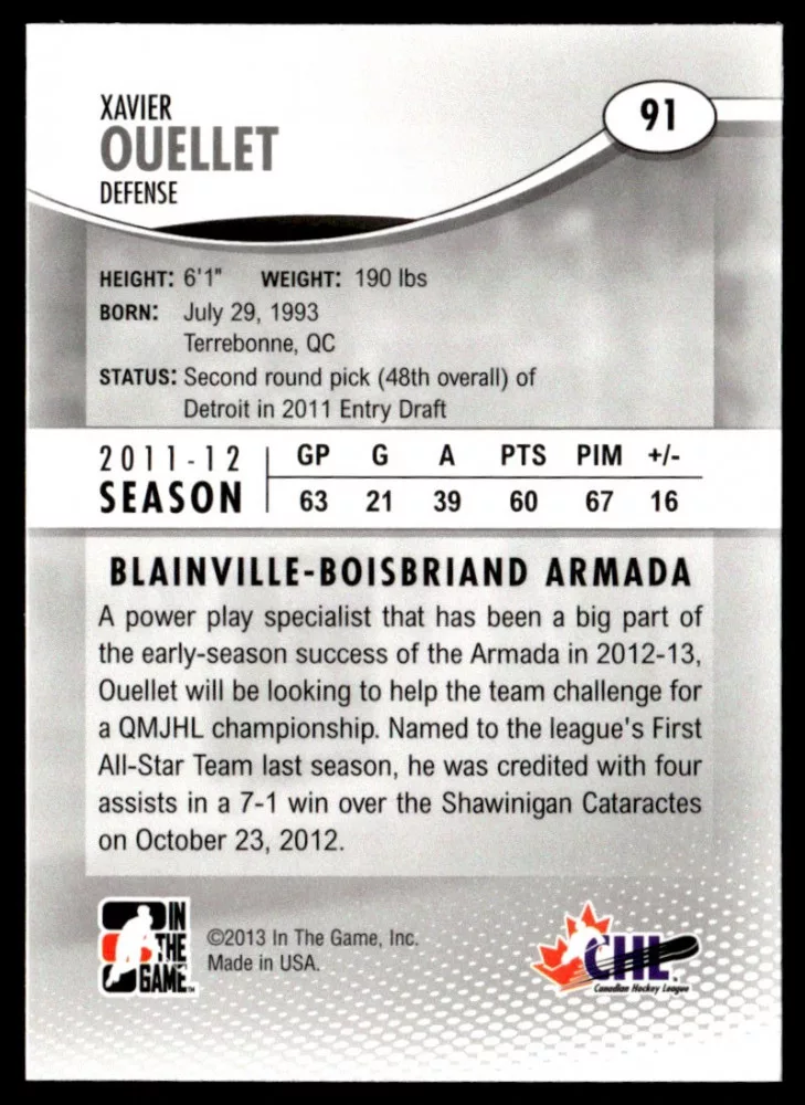 2012 In The Game Heroes and Prospects #91 Xavier Ouellet