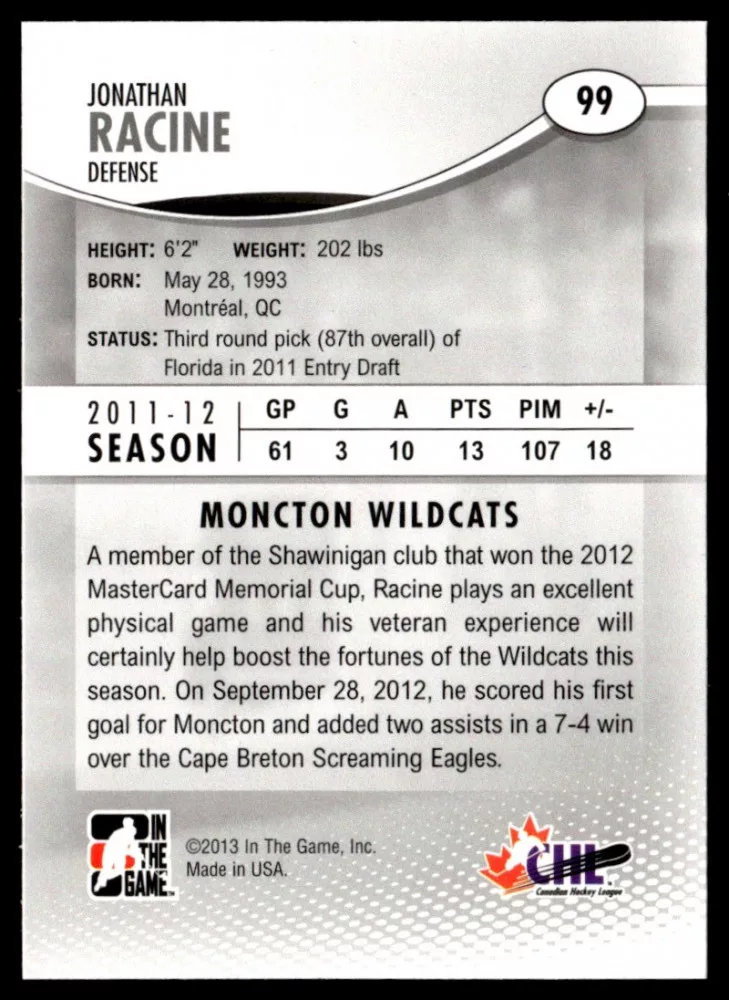 2012 In The Game Heroes and Prospects #99 Jonathan Racine