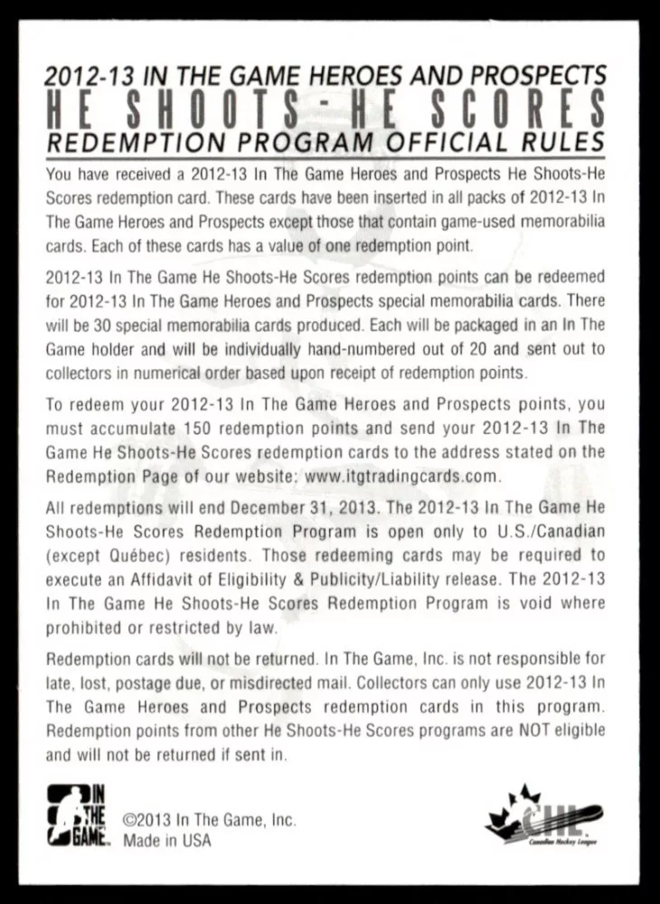 2012 In The Game Heroes and Prospects He Shoots He Scores Points #2