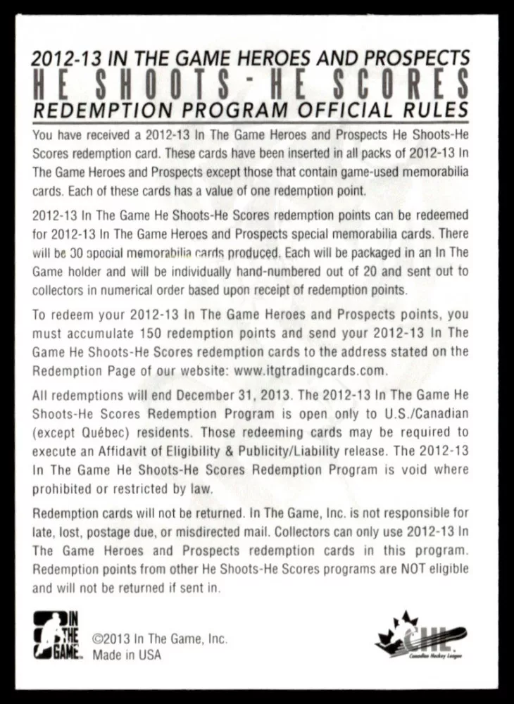 2012 In The Game Heroes and Prospects He Shoots He Scores Points #3