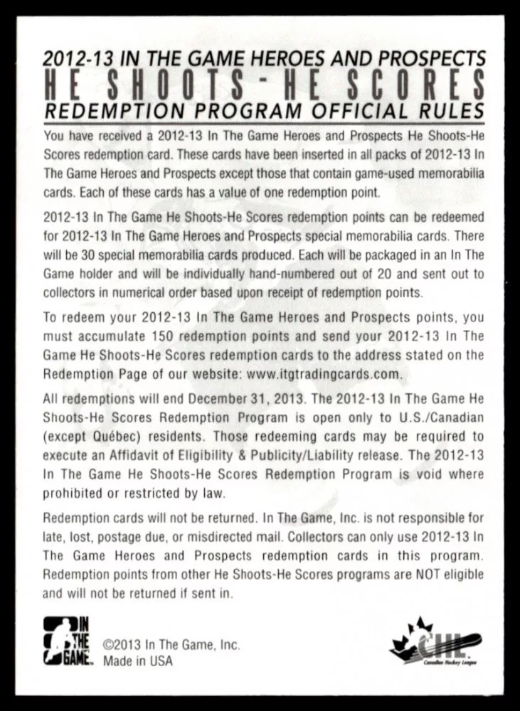 2012 In The Game Heroes and Prospects He Shoots He Scores Points #8 Seth Jones