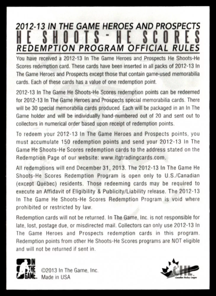 2012 In The Game Heroes and Prospects He Shoots He Scores Points #12